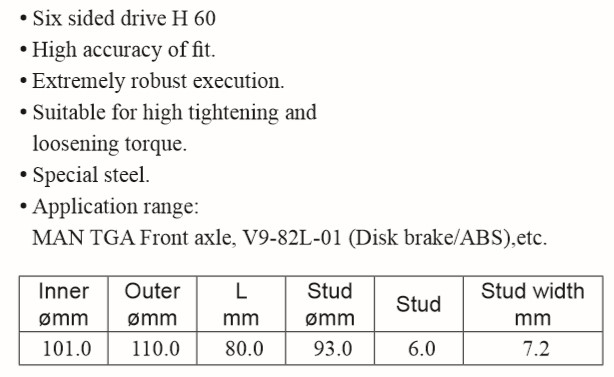 Головка шестизубая ступичная 101-110 мм (MAN, TGA) (FORCE 9T1411)